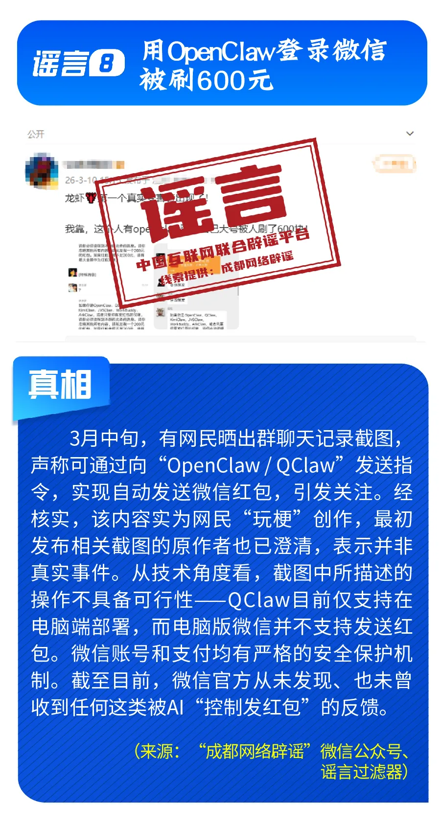 应县木塔将摧毁年夜建、新动力汽车启征“历程税”、用OpenClaw登录Wechat被刷600元……涂明眼睛,满是假的!应县木塔将摧毁年夜建新动力汽车启征“历程税”用OpenClaw登录Wechat被刷600元……拭明眼睛满是假的!敏捷去瞧中原互联网团结造谣仄台3月造谣榜↓↓↓  根源: 中原网疑网